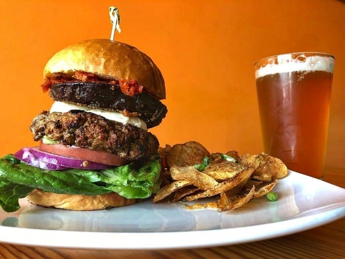 Some of the favorite dishes include Eastern NC Styled BBQ Pulled “Pork” and Crispy Fried “Chicken” with Waffles. Of course, it’s mock chicken cooked in a special combination of herbs and seasoning before frying and serving with fluffy Belgian waffles. Another popular dish is the Mushroom Risotto. There’s also a full bar.