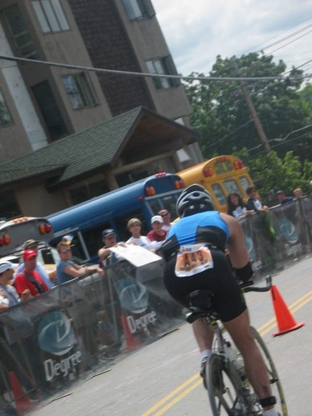 If you are the sole supporter of your triathlete, the day can be long and a little lonely.  It really helps if you know people at the race, but I have been to more than one by myself.  I actually befriended some local “strippers” (for the novice – they help take off wetsuits) I met the night before at dinner in Lake Placid.  They let me hang with them race day and knew all the best viewing spots.  But, when I’m alone, I bring books, go back to the room, go have lunch, talk to people – most everyone is friendly and happy to chat, or shop.