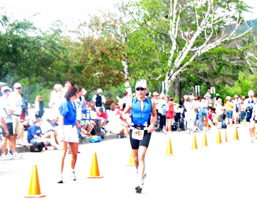 When they exit the water after the second loop, they have a long run to transition. They head down Parkside, make a right at the corner of Mirror Lake Drive and School Street, and then run down School to transition. We strongly advise you take a good look and make your plan the day before. This can be one of the trickier races to get from swim to bike, much like Mont Tremblant, but it can be done. Over the years, we were lucky enough to have each other, even in the pouring rain one year, to show us the ropes. Our girl Jodi taught us well!