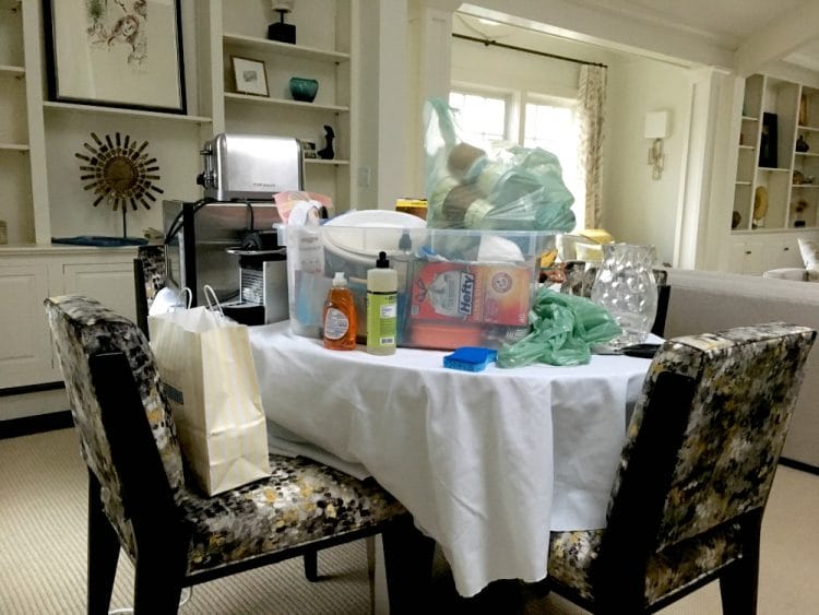 Decide where you can store everything. You will have to clean out your kitchen before starting. Do you have room in your house to store all of your “stuff” or do you need to rent space? I have a spare guest bedroom and unused cabinet space in other rooms, so I was good. I bought some plastic bins and went to work.